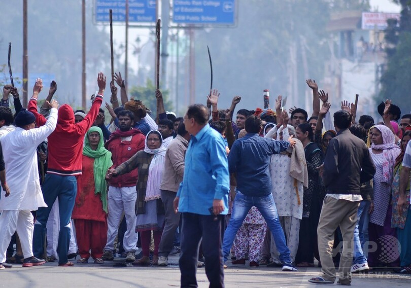 【2月22日 AFP】(更新)インド北部ハリヤナ(Haryana)州で、公務員採用などでの優遇措置を求めるカースト集団の暴動が先週から続き、州政府によると22日までに少なくとも19人が死亡、200人以上が負傷した。抗議行動は22日朝にかけて鎮静化したという。一方、暴徒らが用水路を閉鎖したために、隣接する首都ニューデリー(New Delhi)では深刻な水不足が発生している。