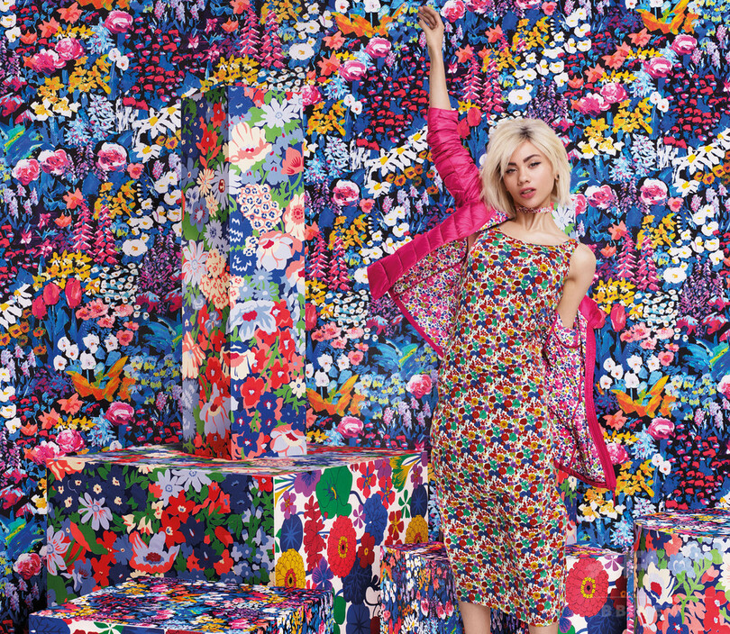 今回のコラボレーションでは、そんな伝統的フローラルプリントとユニクロの進歩的デザインを融合させ、ウィメンズ、メンズ、ガールズ・ベビーアイテムを展開。シャツやドレス、人気のリラコまでが春らしく華やかに彩られた。