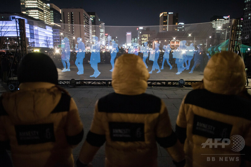 「幽霊デモ」を主催したのは、主催者の国際人権団体アムネスティ・インターナショナル(Amnesty International)の韓国支部。ホログラムを用いたアムネスティのデモは、スペインに続いて世界で2回目だ。