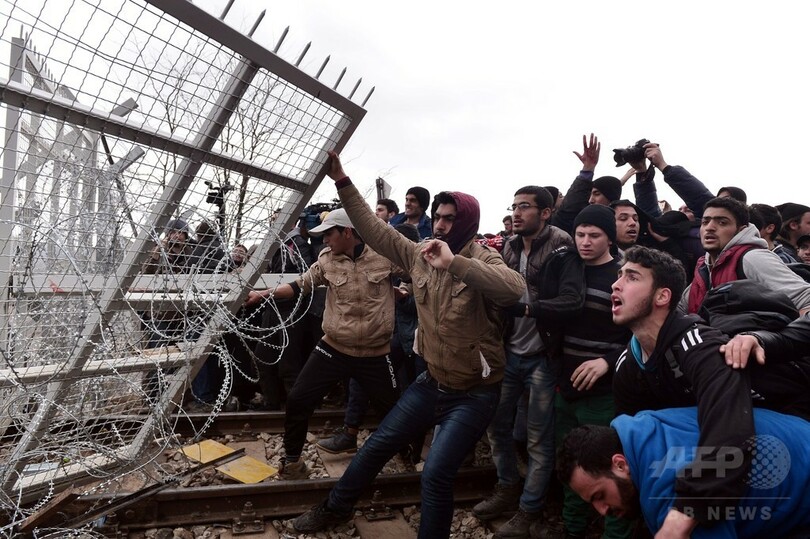 ギリシャ警察による封鎖を破り、両国間にまたがる線路に向かって殺到した300人前後の移民らに対し、マケドニア警察は催涙ガスを使用。また、「国境を開けろ!」と叫びながら標識の柱を使って鉄条網の張られたフェンスを破壊しようとしていた男性の集団に対しても、催涙ガスを浴びせて入国を阻止した。