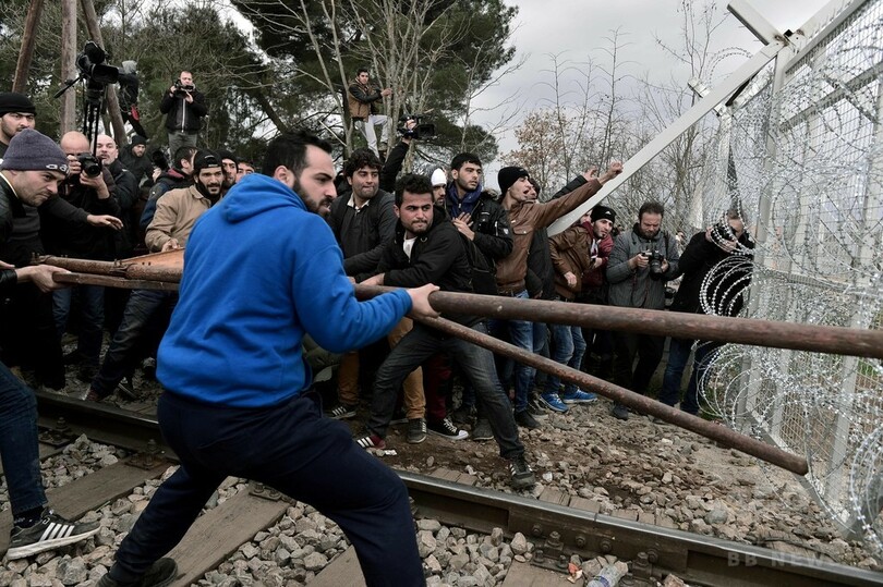ギリシャ警察による封鎖を破り、両国間にまたがる線路に向かって殺到した300人前後の移民らに対し、マケドニア警察は催涙ガスを使用。また、「国境を開けろ!」と叫びながら標識の柱を使って鉄条網の張られたフェンスを破壊しようとしていた男性の集団に対しても、催涙ガスを浴びせて入国を阻止した。