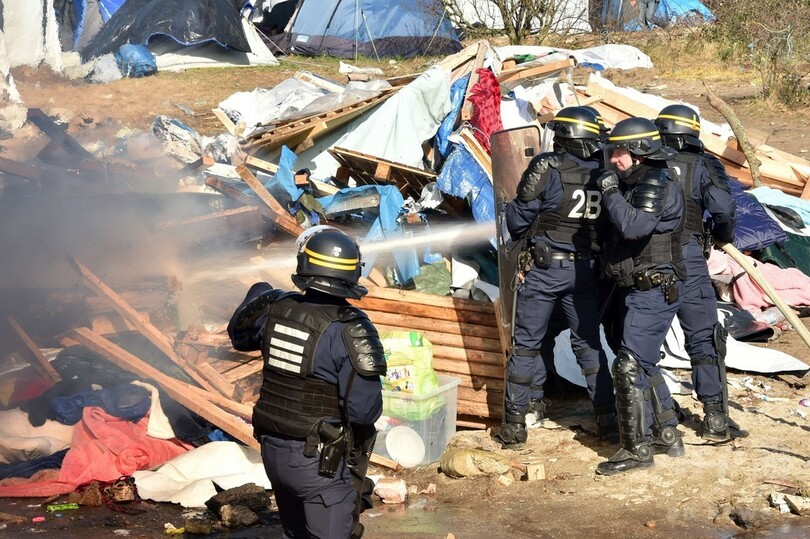 作業員約20人が現場に入り小屋を解体し始めると、移民らが抗議。警察当局は催涙ガス弾を使用して鎮圧を図った。さらに移民と英活動家団体「ノーボーダーズ(No Borders)」のメンバーらが、キャンプ内の約20の小屋に放火。敷地内の衝突は午後いっぱい続いた。