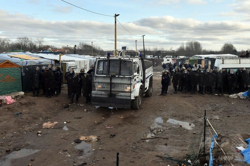 作業員約20人が現場に入り小屋を解体し始めると、移民らが抗議。警察当局は催涙ガス弾を使用して鎮圧を図った。さらに移民と英活動家団体「ノーボーダーズ(No Borders)」のメンバーらが、キャンプ内の約20の小屋に放火。敷地内の衝突は午後いっぱい続いた。