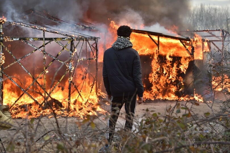仏の移民キャンプ撤去、機動隊との衝突発生 放火も