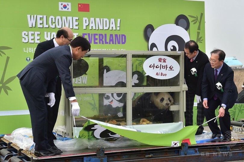 中国からパンダが到着、仁川国際空港で歓迎式典 韓国