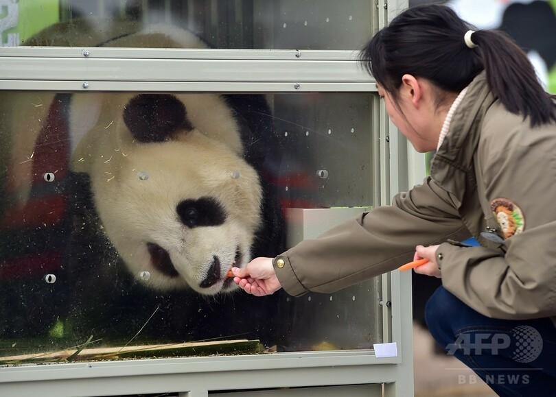 【3月3日 AFP】韓国・ソウル(Seoul)西方にある仁川国際空港(Incheon International Airport)に3日、中国から2頭のジャイアントパンダ、「楽宝(Lebao)」と「愛宝(Aibao)」が到着し、歓迎式典が行われた。2頭は、中国の習近平(Xi Jinping)国家主席から韓国にプレゼントされた。(c)AFP
