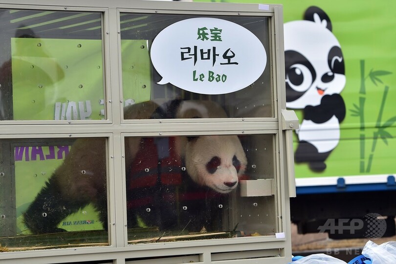 中国からパンダが到着、仁川国際空港で歓迎式典 韓国