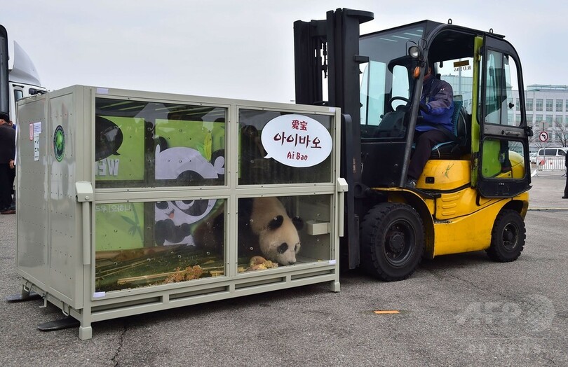 中国からパンダが到着、仁川国際空港で歓迎式典 韓国
