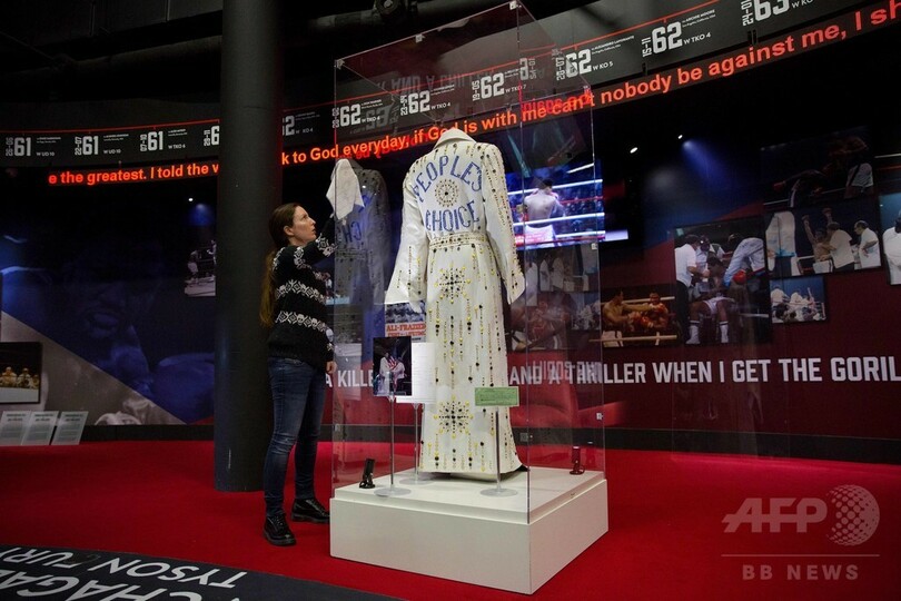 4日に開幕する同展示会は、子ども時代から輝かしいキャリアを経て、アリが文化および政治的アイコンになるまでの半生を追ったもの。1975年の対ジミー・ヤング(Jimmy Young)戦でアリが使ったシューズなどが展示される。(c)AFP