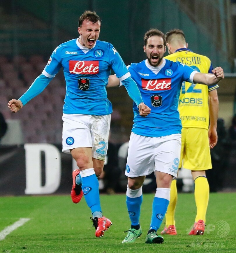 【3月6日 AFP】15-16イタリア・セリエAは5日、第28節の試合が行われ、リーグ戦で3試合も勝利から見放されていたナポリ(SSC Napoli)は、キエーボ・ベローナ(Chievo Verona)に3-1で勝利し、暫定ながら首位ユベントス(Juventus)と勝ち点で並んだ。