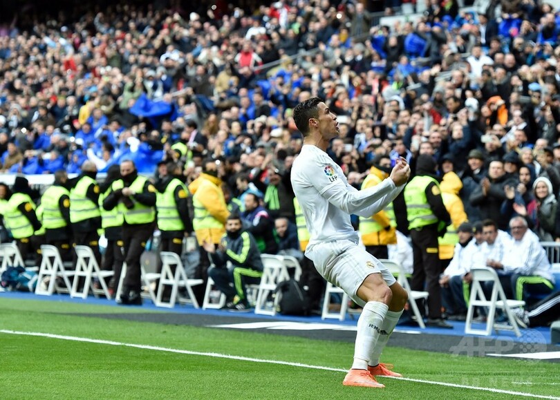 ロナウドは後半開始早々、選手への要求が厳しいことで有名なレアルファンの一部からやじを浴びたが、批判の声に大量得点で応えてみせた。ロナウドはレアルで出場したリーグ戦228試合で計252得点をたたき出しており、スペイン1部リーグの通算得点数でテルモ・サラ(Telmo Zarra)氏を抜き、歴代2位に浮上している。