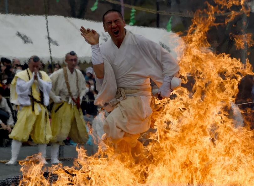 ニュース ライフ 無病息災願い火渡りの荒行、埼玉で春告げる「長瀞火祭り」 2016年3月7日 9:09 発信地:長瀞町/埼玉 [ アジア・オセアニア 埼玉 ] このニュースをシェア 画像作成中 この写真にはショッキングな表現、または18歳以上の年齢制限の対象となる内容が含まれます。ご覧になる場合にはご了承の上、クリックしてください。 この画像を見る ❯ {{photo.ind}}/13 画像作成中 {{photo.ind}}/13 画像作成中 ! 【3月7日 AFP】埼玉県長瀞町で6日、春の到来に合わせた信仰行事「長瀞火祭り」が開催された。僧侶らは心身の邪気を焼き払うといわれる火渡りの荒行を繰り広げ、観光客らも無病息災を祈ってあとに続いた。(c)AFP ライフ 一覧へ> メディア・報道関係・法人の方向け 写真・動画 購入のお問合せ>