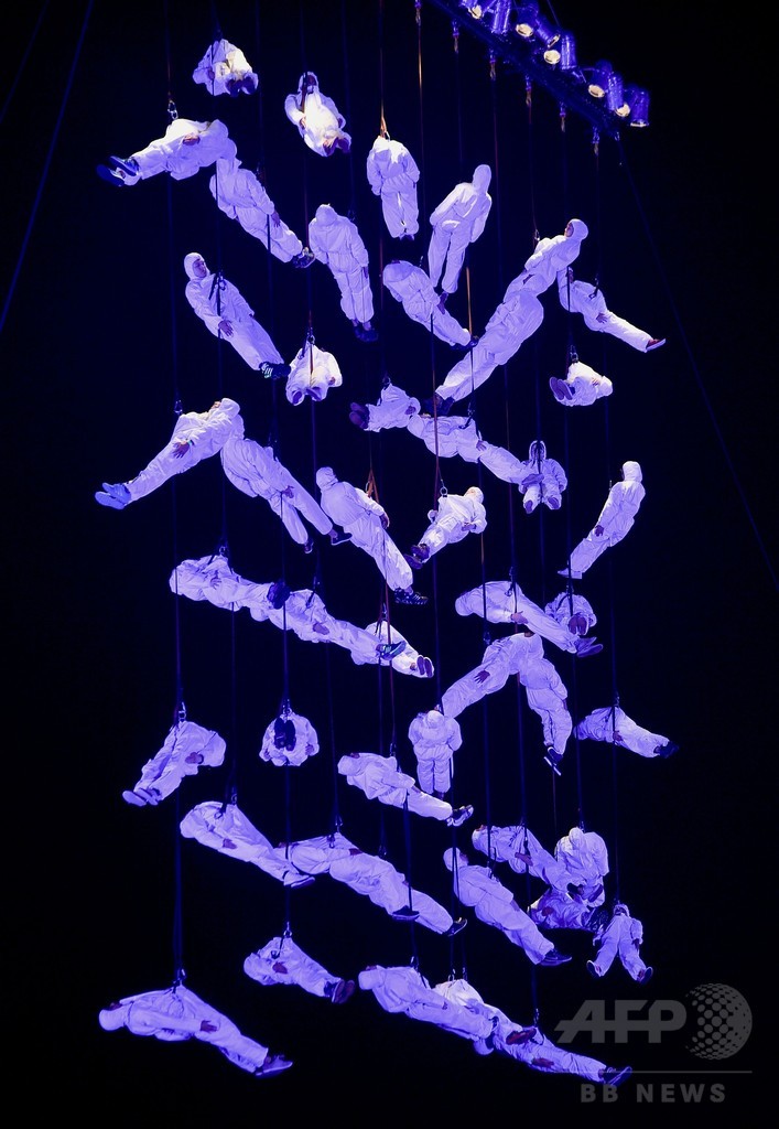 【3月7日 AFP】南米コロンビアの首都ボゴタ(Bogota)で5日、第15回イベロアメリカ国際演劇祭(Ibero-American Theater Festival)のオープニングイベントが開催され、スペインの劇団「ラ・フラ・デルス・バウス(La Fura dels Baus)」演出のパフォーマンス「アフロディーテとパリスの審判(Aphrodite and the judgment of Paris)」が上演された。(c)AFP
