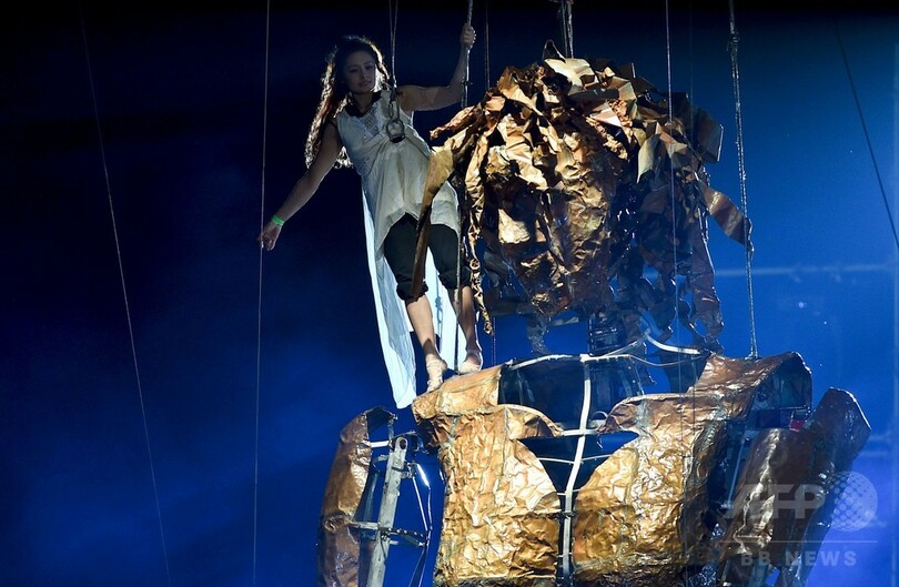 【3月7日 AFP】南米コロンビアの首都ボゴタ(Bogota)で5日、第15回イベロアメリカ国際演劇祭(Ibero-American Theater Festival)のオープニングイベントが開催され、スペインの劇団「ラ・フラ・デルス・バウス(La Fura dels Baus)」演出のパフォーマンス「アフロディーテとパリスの審判(Aphrodite and the judgment of Paris)」が上演された。(c)AFP