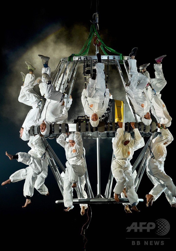 【3月7日 AFP】南米コロンビアの首都ボゴタ(Bogota)で5日、第15回イベロアメリカ国際演劇祭(Ibero-American Theater Festival)のオープニングイベントが開催され、スペインの劇団「ラ・フラ・デルス・バウス(La Fura dels Baus)」演出のパフォーマンス「アフロディーテとパリスの審判(Aphrodite and the judgment of Paris)」が上演された。(c)AFP