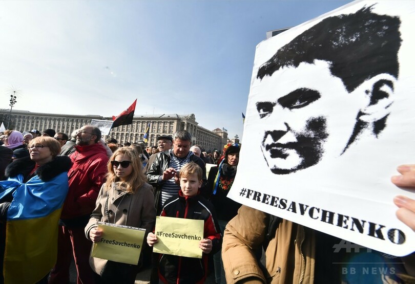 【3月7日 AFP】ウクライナの首都キエフ(Kiev)で6日、ロシア人記者2人を殺害したとしてロシアで裁判にかけられているウクライナ軍パイロットの釈放を求める抗議集会が開かれ、デモ隊の一部がロシア大使館に石や卵を投げつける騒ぎとなった。