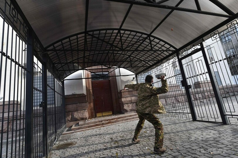 ロシア大使館をデモ隊が襲撃、ウクライナ軍パイロットの釈放要求