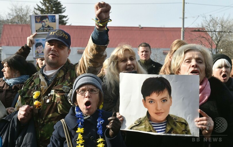 【3月7日 AFP】ウクライナの首都キエフ(Kiev)で6日、ロシア人記者2人を殺害したとしてロシアで裁判にかけられているウクライナ軍パイロットの釈放を求める抗議集会が開かれ、デモ隊の一部がロシア大使館に石や卵を投げつける騒ぎとなった。