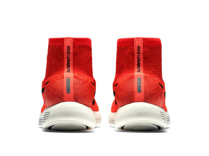 アッパーには、柔らかく伸縮性の高い新素材“ナイキ フライニット”を採用。この素材は軽く通気性があり、各部位の網目密度を変えることで、アーチ、かかと、前足部などにぴったりフィットしてサポート性を高めてくれる。また足首まで覆う画期的なミッドカットデザインが、安定感と一体感を実現した。