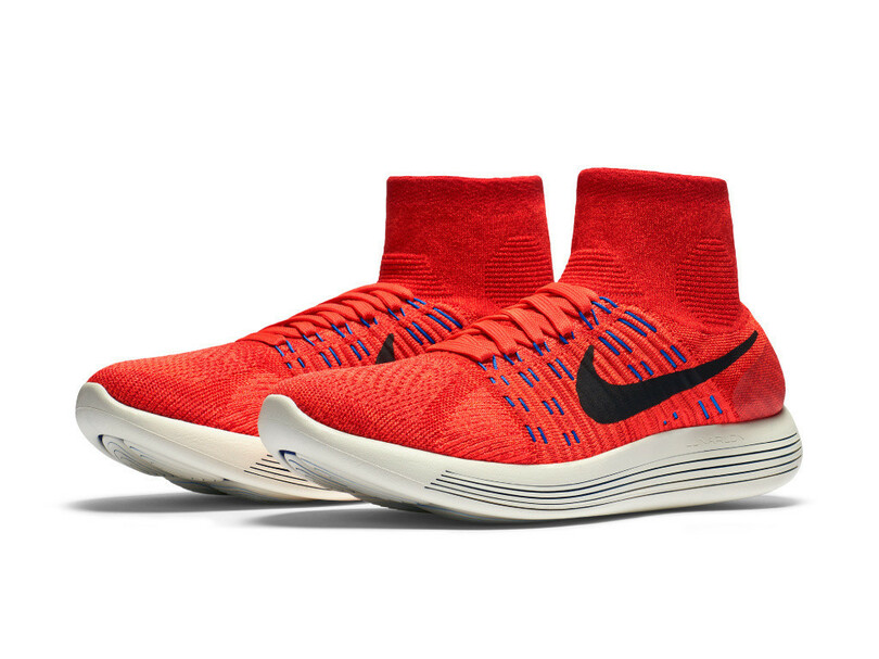 アッパーには、柔らかく伸縮性の高い新素材“ナイキ フライニット”を採用。この素材は軽く通気性があり、各部位の網目密度を変えることで、アーチ、かかと、前足部などにぴったりフィットしてサポート性を高めてくれる。また足首まで覆う画期的なミッドカットデザインが、安定感と一体感を実現した。