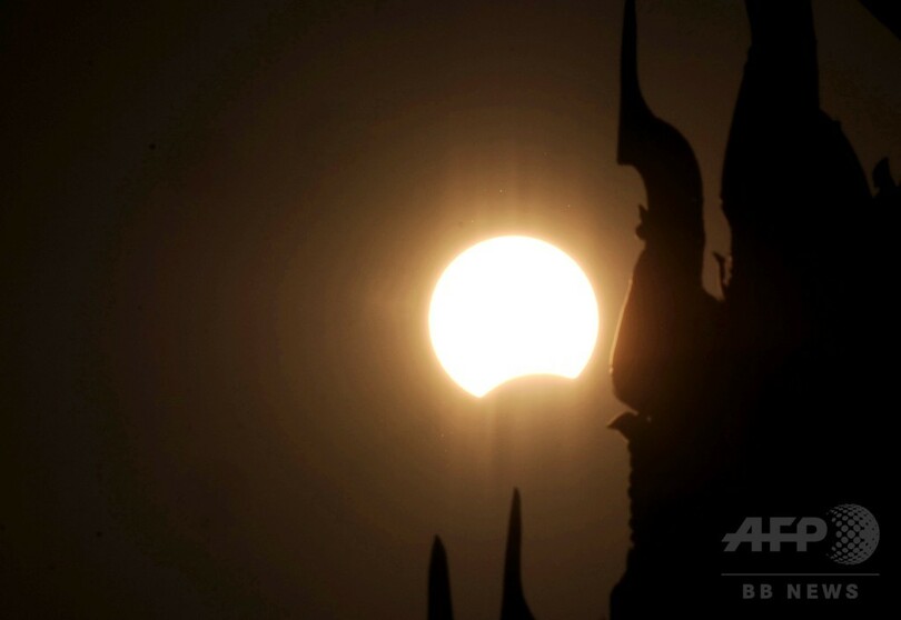 また、アジアの他の地域やオーストラリアなどでも部分日食が観測された。(c)AFP