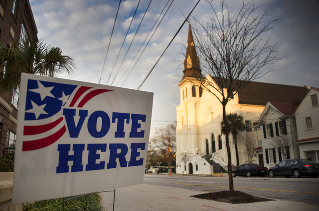 米共和党の大統領候補指名争い、サウスカロライナ州の投票所の一つ、チャールストンのエマニュエル・アフリカン・メソジスト監督教会(2016年2月20日撮影)。(c)AFP/JIM WATSON