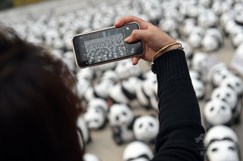 張り子パンダ、大群で「絶滅危機への関心」訴え