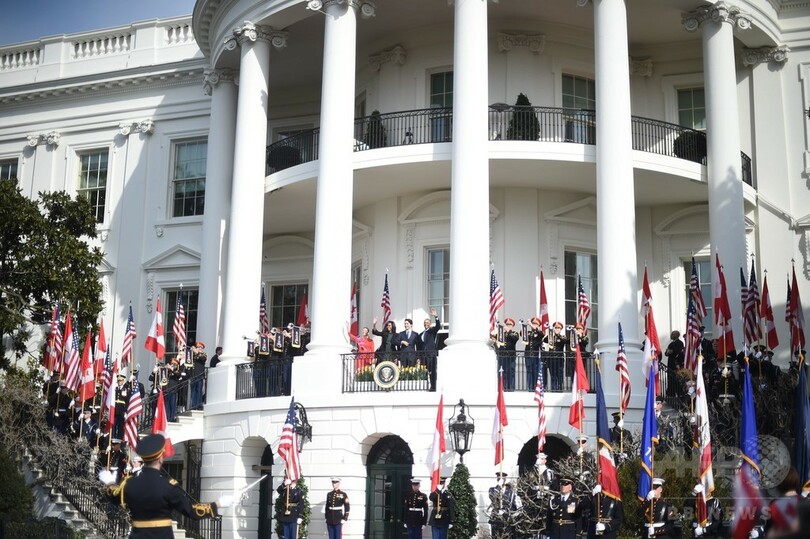 米加関係の再構築に向けた公式訪問とあって、ホワイトハウスの南庭「サウスローン(South Lawn)」で行われた歓迎式典では、軍楽隊と儀仗(ぎじょう)兵が華々しくカナダの若い新首相を出迎えた。