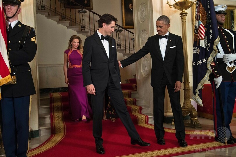 【3月11日 AFP】バラク・オバマ(Barack Obama)米大統領(54)は10日、カナダ首相として約20年ぶりに米国を公式訪問したジャスティン・トルドー(Justin Trudeau)首相(44)をホワイトハウス(White House)に迎え、「とても見栄えのよいカナダの外交団」とのあいさつで歓迎した。