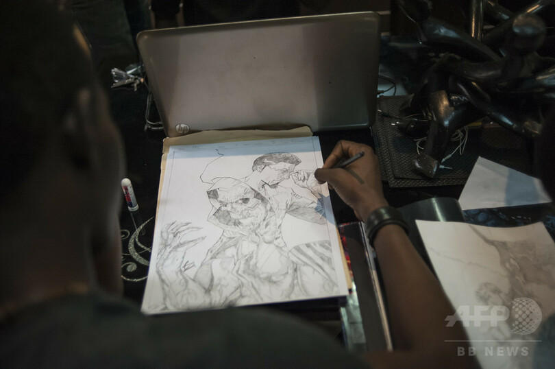 「大学生のときに、スーパーマン(Superman)がナイジェリアに来たらどうなるだろうと考え始めた」と、マーティンズさんはラゴス(Lagos)の自宅アパートでAFPに語った。ダイニングルームは、自分の下で働く若いイラストレーターたちの仕事場にもなっている。