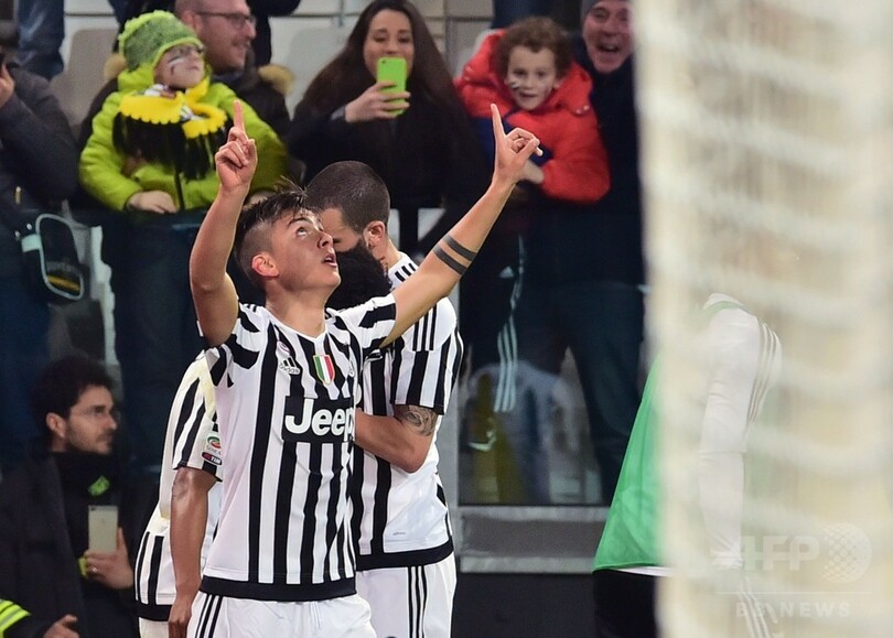ユベントスは前半36分にパウロ・ディバラ(Paulo Dybala)の素晴らしいゴールが決まり、無敗記録を19試合に伸ばすと、リーグタイ記録の5連覇に前進。13日にアウェーでパレルモ(US Citta di Palermo)と戦うナポリにプレッシャーをかけた。