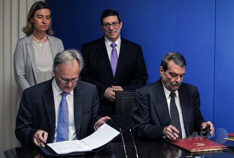 EUとキューバが関係正常化へ、合意書に署名
