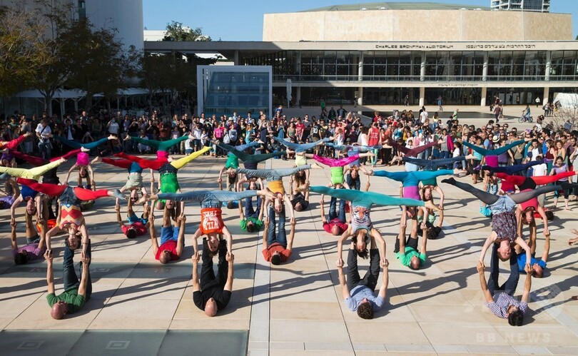 150人がアクロヨガ、イスラエルでフラッシュモブ