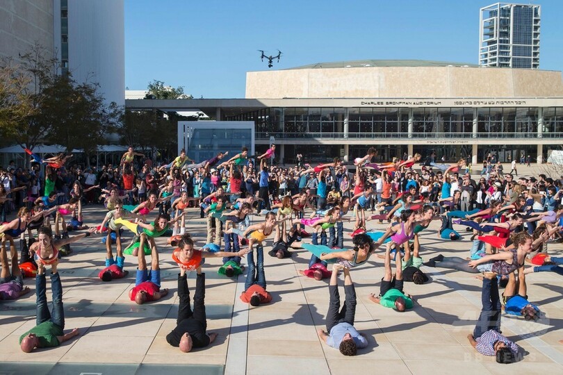 150人がアクロヨガ、イスラエルでフラッシュモブ
