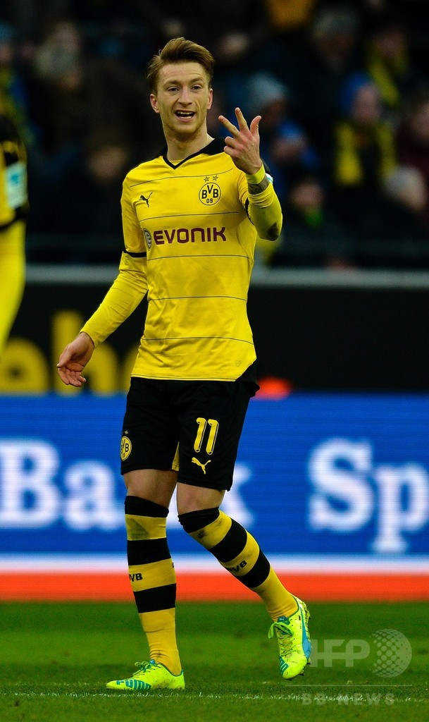 この勝利でドルトムントは、首位バイエルン・ミュンヘン(Bayern Munich)との勝ち点差5を守った。(c)AFP/Ryland JAMES