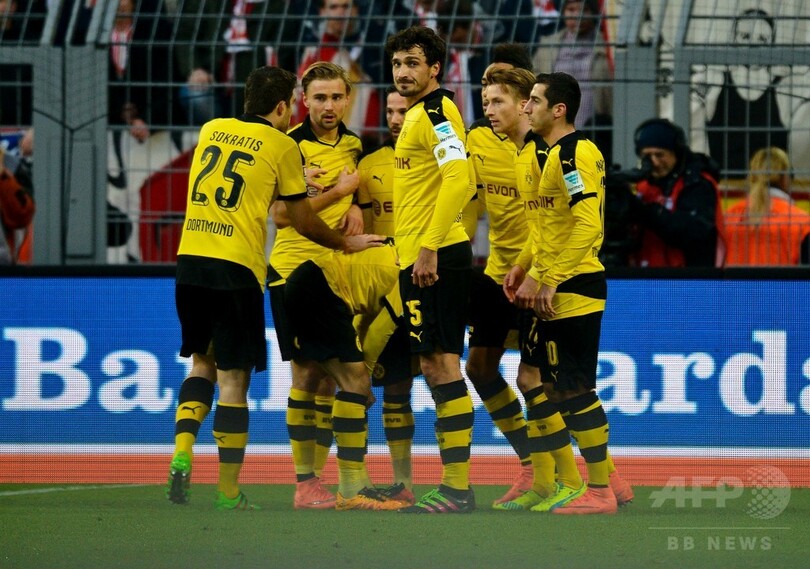 この勝利でドルトムントは、首位バイエルン・ミュンヘン(Bayern Munich)との勝ち点差5を守った。(c)AFP/Ryland JAMES
