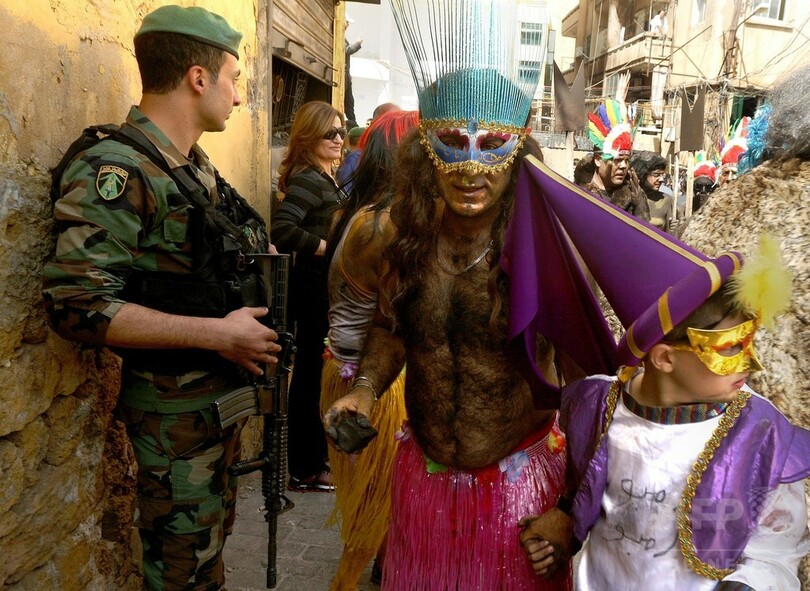 ニュース ライフ 怪人に扮装? 四旬節前のカーニバル、レバノン 2016年3月14日 14:20 発信地:トリポリ/レバノン [ 中東・北アフリカ レバノン ] このニュースをシェア ‹ › ❮ 6/22 ❯ レバノン北部トリポリで開催された恒例のカーニバル「ザムボ」の参加者たちと、警備に当たるレバノン兵(2016年3月13日撮影)。(c)AFP/PATRICK BAZ 画像作成中 ! 【3月14日 AFP】レバノン北部トリポリ(Tripoli)で13日、ギリシャ正教の四旬節(Lent)前の最後の期間を祝う恒例のカーニバル「ザムボ(Zambo)」が開催された。 ザムボが何に着想を得たのかは明らかではないが、ブラジルへの移民が故郷トリポリにカーニバル文化を持ち帰って以来、1世紀以上にわたって毎年開催されている。(c)AFP ライフ 一覧へ> メディア・報道関係・法人の方向け 写真・動画 購入のお問合せ>