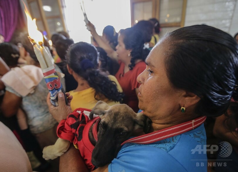 【3月14日 AFP】中米ニカラグアの首都マナグア(Managua)から南へ30キロに位置するマサヤ(Masaya)のサンタ・マリア・マグダレーナ(Santa Maria Magdalena)教区で13日、聖ラザロ(San Lazaro)を祝う祭りが開かれた。同国の伝統によると、信者は聖ラザロへの敬意を示すため犬に服を着せてミサに出席し、犬の健康を祈願する。(c)AFP