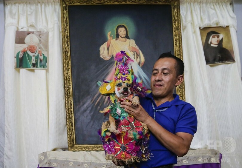 愛犬を着飾り健康祈願、中米ニカラグアで聖ラザロの祭り