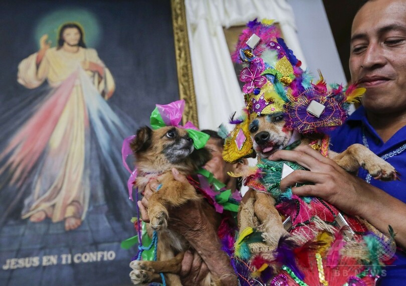 愛犬を着飾り健康祈願、中米ニカラグアで聖ラザロの祭り