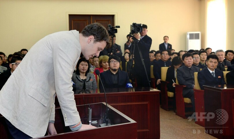 【3月16日 AFP】(更新、写真追加)北朝鮮最高裁は16日、同国内で政治スローガンが記された掲示物を盗んだ米国人大学生に対し、反国家犯罪で15年の労働教化刑を言い渡した。同国の国営朝鮮中央通信(KCNA)が伝えた。