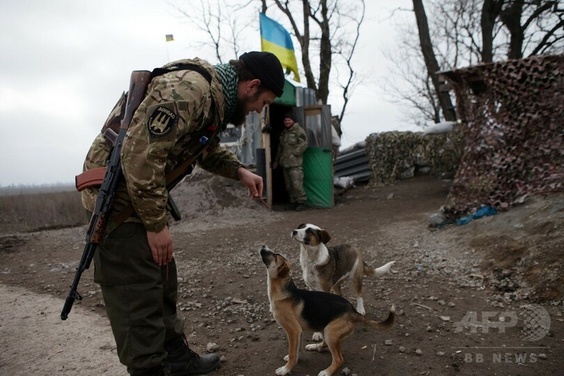 【3月16日 AFP】ウクライナ東部で戦う政府軍と分離独立を掲げる親ロシア派武装勢力。それぞれの兵士や戦闘員がともに最良の友として挙げるのは、飼い主を失ったイヌやネコたちだ。