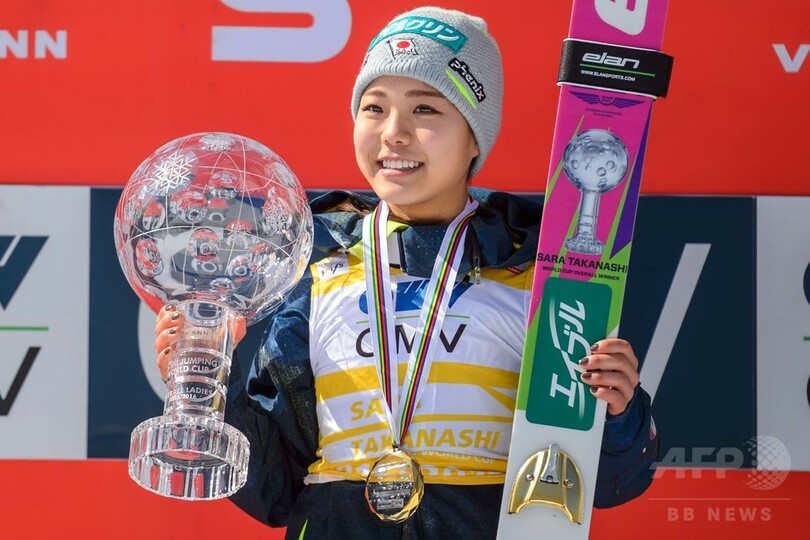 【3月21日 AFP】スキージャンプ女子で2015-16シーズンのW杯総合優勝を決めていた高梨沙羅(Sara Takanashi)が20日、スロベニアのプラニツァ(Planica)で行われた表彰式に出席した。(c)AFP