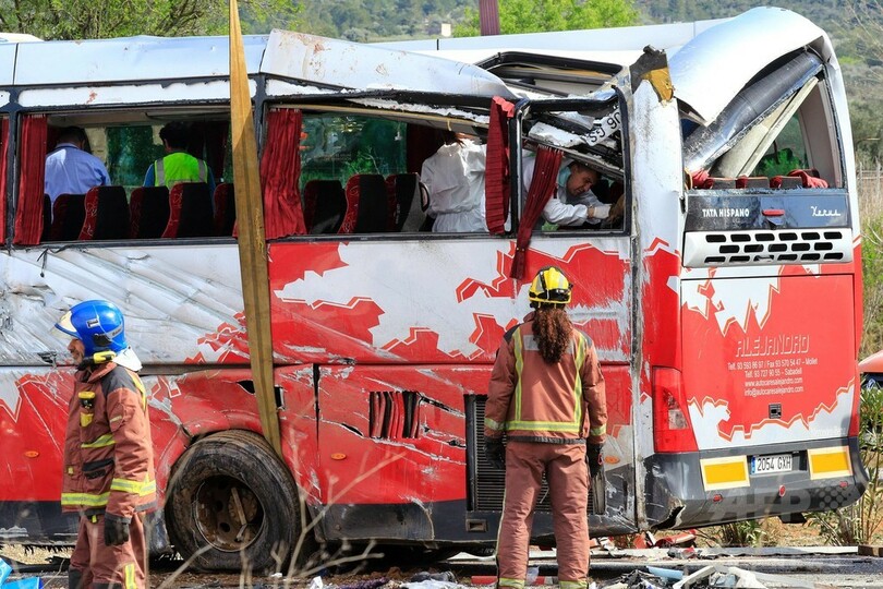 【3月21日 AFP】(更新)スペイン北東部カタルーニャ(Catalonia)自治州で20日、日本を含むさまざまな国籍の留学生を乗せたバスが対向車線の車に衝突し、地元当局によると女子学生13人が死亡、30人以上が負傷した。負傷者のうち6人は重体という。