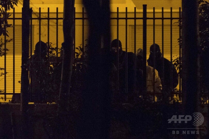 警官は共同住宅の他の住民を避難させた上で家宅捜索を実施。現場では、24日夜の時点でも捜索活動が続けられている。(c)AFP