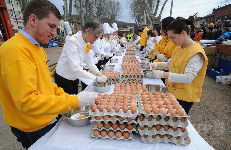 ニュース ライフ こぼれ話 卵1万5000個超、イースター恒例の巨大オムレツ作り 仏 2016年3月29日 9:31 発信地:ベシエール/フランス [ ヨーロッパ フランス ] このニュースをシェア 画像作成中 この写真にはショッキングな表現、または18歳以上の年齢制限の対象となる内容が含まれます。ご覧になる場合にはご了承の上、クリックしてください。 この画像を見る ❯ {{photo.ind}}/15 画像作成中 {{photo.ind}}/15 画像作成中 ! 【3月29日 AFP】フランス南西部ベシエール(Bessieres)で28日、イースター(Easter、復活祭)恒例のオムレツ作りが行われた。地元の巨大イースター・オムレツ作りグループのメンバーが作るこのオムレツには、1万5000個を超える卵が使用された。(c)AFP ライフ 一覧へ> メディア・報道関係・法人の方向け 写真・動画 購入のお問合せ>