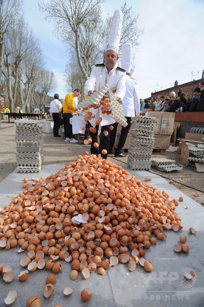 ニュース ライフ こぼれ話 卵1万5000個超、イースター恒例の巨大オムレツ作り 仏 2016年3月29日 9:31 発信地:ベシエール/フランス [ ヨーロッパ フランス ] このニュースをシェア 画像作成中 この写真にはショッキングな表現、または18歳以上の年齢制限の対象となる内容が含まれます。ご覧になる場合にはご了承の上、クリックしてください。 この画像を見る ❯ {{photo.ind}}/15 画像作成中 {{photo.ind}}/15 画像作成中 ! 【3月29日 AFP】フランス南西部ベシエール(Bessieres)で28日、イースター(Easter、復活祭)恒例のオムレツ作りが行われた。地元の巨大イースター・オムレツ作りグループのメンバーが作るこのオムレツには、1万5000個を超える卵が使用された。(c)AFP ライフ 一覧へ> メディア・報道関係・法人の方向け 写真・動画 購入のお問合せ>