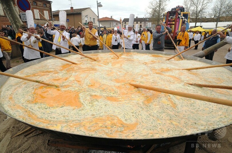 ニュース ライフ こぼれ話 卵1万5000個超、イースター恒例の巨大オムレツ作り 仏 2016年3月29日 9:31 発信地:ベシエール/フランス [ ヨーロッパ フランス ] このニュースをシェア 画像作成中 この写真にはショッキングな表現、または18歳以上の年齢制限の対象となる内容が含まれます。ご覧になる場合にはご了承の上、クリックしてください。 この画像を見る ❯ {{photo.ind}}/15 画像作成中 {{photo.ind}}/15 画像作成中 ! 【3月29日 AFP】フランス南西部ベシエール(Bessieres)で28日、イースター(Easter、復活祭)恒例のオムレツ作りが行われた。地元の巨大イースター・オムレツ作りグループのメンバーが作るこのオムレツには、1万5000個を超える卵が使用された。(c)AFP ライフ 一覧へ> メディア・報道関係・法人の方向け 写真・動画 購入のお問合せ>