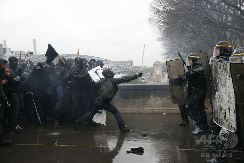 デモは仏全土の200か所で行われる見通しとなっている。西部ナント(Nantes)とレンヌ(Rennes)では機動隊とデモ隊が衝突した。またパリでは「よりよい(法案を)求める」「19世紀への大躍進」などと書かれた横断幕を掲げてデモ隊が行進。警察当局によると、パリではデモの参加者ら10人が拘束された。