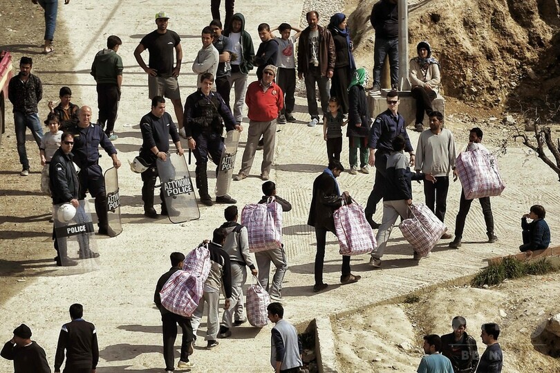 EUとトルコは3月、欧州への移民らの流入を抑制するため、最もよく使われるルートであるトルコ経由で同月20日以降にギリシャに到着した「不法移民」全員を、トルコに送り返す方針で合意した。シリア難民については、ギリシャからトルコに1人送還されるごとに、EU側がトルコから1人を受け入れる交換方式をとり、上限は7万2000人となっている。(c)AFP